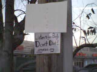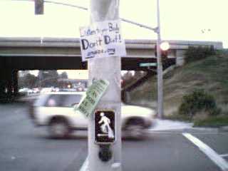 Okay, I made 40 copies of the above sign. I'm staying with friends in Garden Grove, Southern California, and I put up a sign near their house, just below a weight loss sign in Spanish. Now I wish I'd brought my digital camera. I'll have to post some near home and get pictures.
